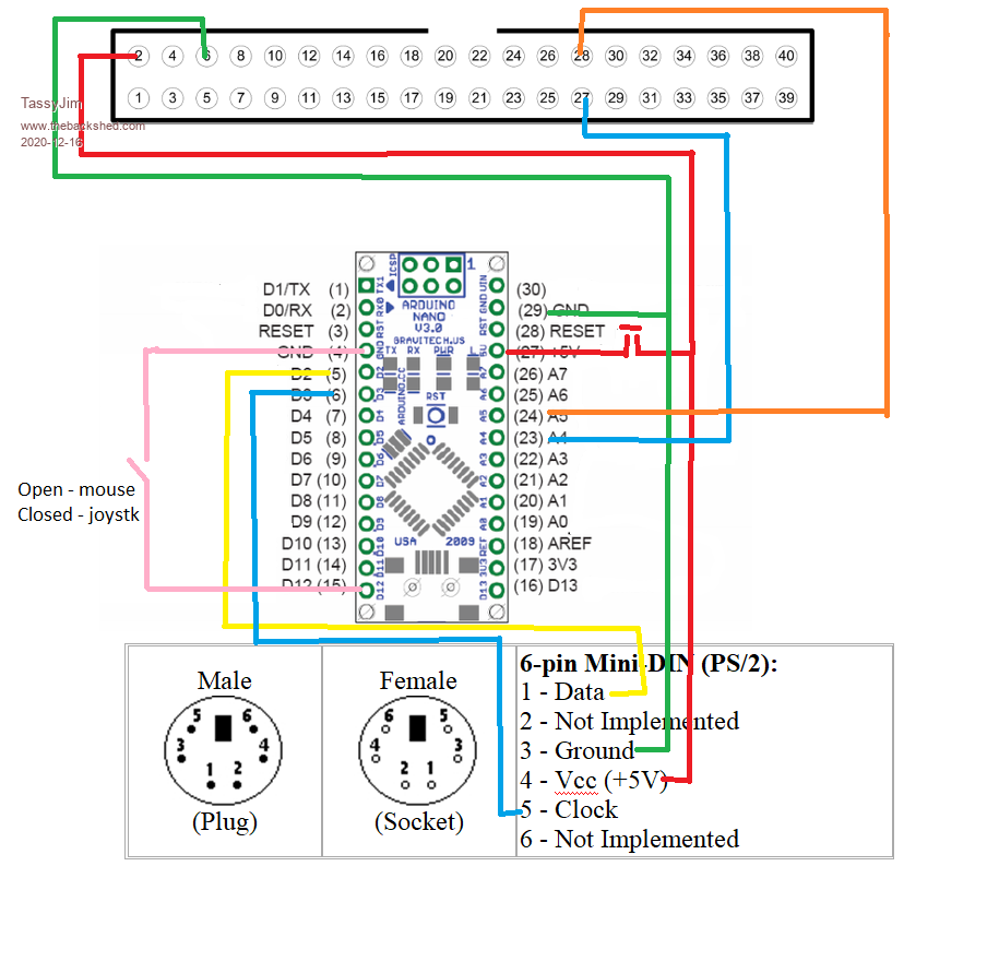 Hi Jim. On the mouse only diagram, what is that symbol on the line from pin 2 on CMM2 going to pin 27 on nano and 5+ on ps2 port? Is that for a momentary switch normally closed? I am going to build this today and want to make sure I got everything right. Thanks. Edited 2020-12-17 03:32 by mclout999 They call me Shai-Hulud (The maker) |
