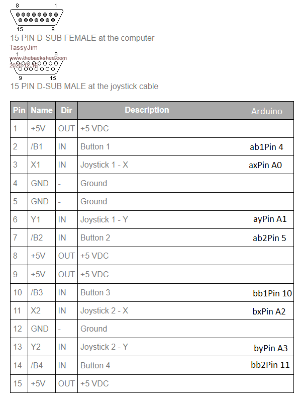 Mouse mark 2. PS/2 mouse to HobbyTronics converter using an Arduino Nano Also includes joystick to HobbyTronics mouse converter. If you are only interested in the mouse function, all you need is the Arduino nano and a couple of connectors. For the joystick option, you need 4 10k resistors and a joystick post connector. A switch to change from mouse to joystick is also required or you could use a shorting jumper instead. For the mouse this is all the required connections: ![]() If you want the joystick, there are 4 10k resistors connected from A0 to D9 A1 to D8 A2 to D7 A3 to D6 These pins were chosen to make it easy to connect using a breadboard or stripboard. The joystick port is connected using the following table: ![]() ![]() PS/2 mouse only Underside with 10k resistors added. Complete with external reset button, mode switch, joystick port. When programming, remember to isolate the 5V from the maximite so the two supplies don't get tied together. The system runs happily with the Arduino power coming from its USB port. To use with a PS/2 mouse, leave pin 12 open (Internal pullup) To use with a joystick, ground pin 12. You should be able to switch between the two modes with power left on but will need to re-initialise using CONTROLLER MOUSE OPEN If I2C polling is not present, it will spit out serial data. You can ignore this but the serial port monitor in the Arduino IDE is handy to see what's happening during experimentation. I haven’t tried a linear type joystick yet and don't have a digital/Atari style. I will need to do some tweaking of the gains to have them feel the same as the iBM style. I expect that joystick use will be better served with a Wii Classic emulator. I will revisit that one eventually, incorporating the improvements I have made for the mouse. The logic for switching between joysticks is: For IBM style, we need a 10k resistor to ground for each analogue input. For Digital styles which switch to ground, we need a 10k pullup resistor. For Linear style, they have 5v and ground connected to each end of the pot so we don't want any pullup or pulldown. By connecting the four 10k resistors to digital pins, we can switch high, low or high impedance in software, allowing all styles to be used. I also used this to determine what style joystick is attached. The digital joysticks need no setup. The IBM style should all have trimmers built in to the joystick so no software zeroing used. For the linear style, I assume that the joystick is in its centre rest position during startup and use those readings as the centre zero. This hasn't been tried in real life yet. HT_mouse1.zip Jim VK7JH MMedit |