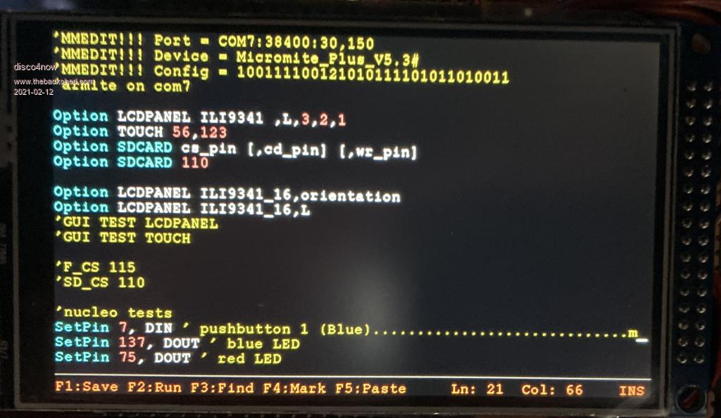 Forum Index : Microcontroller and PC projects : ArmmiteF4 firmware: V5.06.00