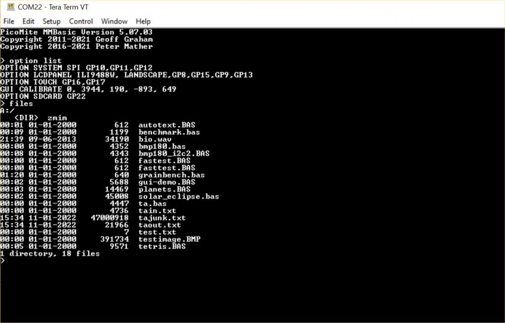 Forum Index : Microcontroller and PC projects : PicoMite/PicoMiteVGA V5.07.04 betas