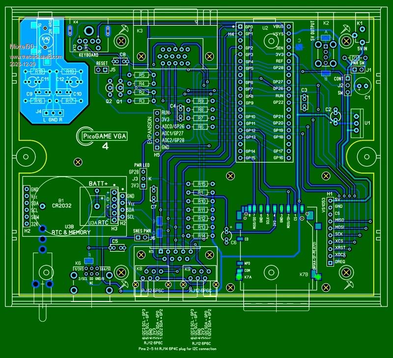I've done a fair bit of work on this now. The WII sockets have finally arrived (only 16 days later than the estimated delivery date) so I'm finally able to measure one. It looks like they will fit ok. I've put the Line Output jack on the PCB, together with its associated components, on a clean GND to keep the noise down (I hope). I've included the Expansion socket with RUN, GP26, GP27 & GP28 on it inside the case. It could be used to fit something in there. (GP26 & GP27 are also on the DB9 connector and there is an option to put the Power LED on GP28). There is also a hole on the same 0.1" pitch as the connector, which could be used to help support a PCB. You *could* fit the same SPST switch as the CMM2 uses, but only if you trim the rear/top connection off. That isn't a problem in the UK, where we mount our switches the right way up, but those "inverted " countries may have to run a wire from the PCB pad to the switch because a full-size RTC or the optional CR2032 gets in the way. :) It's probably simpler to just fit a shorter switch mounted on the front panel. You have to run wires in either case. ================================================== EDIT: I've taken pity, and it's now possible to use the switch that was used on the CMM2 so that's what I've done. No need to run wires for it now and On can be either up or down without hacking the switch. An internal expansion board can be up to 60mm x 34mm with the connector close to the middle of it and two mechanical fixing holes. Ordinary matrix or strip board can be used for it. . Edited 2023-12-30 06:12 by Mixtel90 Mick Zilog Inside! nascom.info for Nascom & Gemini Preliminary MMBasic docs & my PCB designs |
