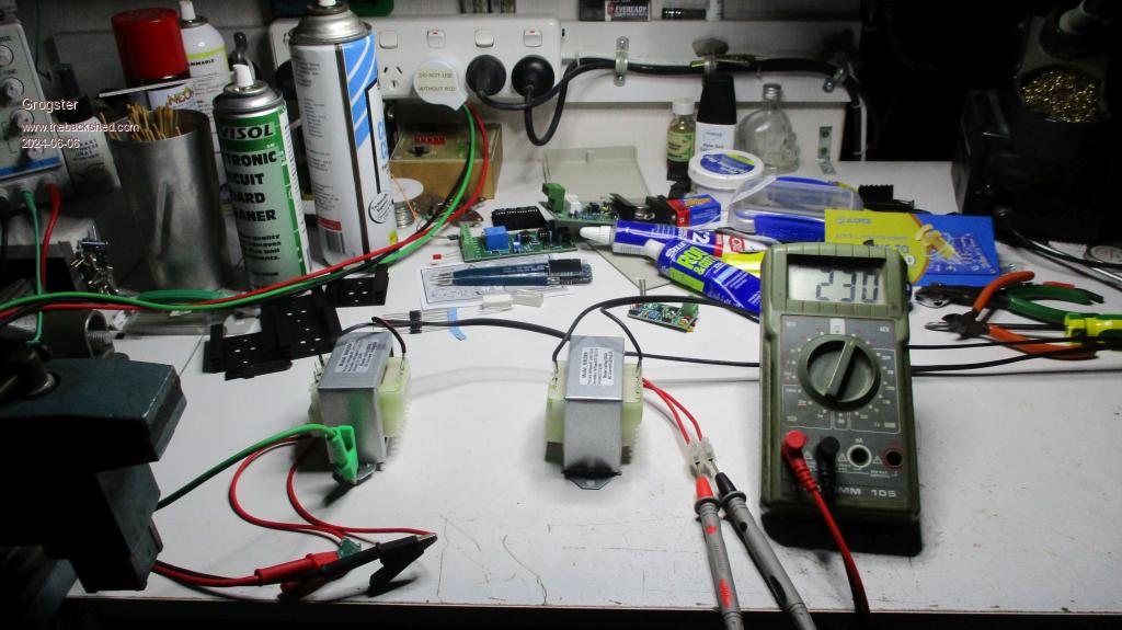 BENCH TESTING: ![]() This is the very standard HV-LV-LV-HV transformer arrangement. (sometimes called HV-LV-HV) A happy 230vAC at the other end of the 100-meter link of speaker cable. (no load) Yes, I laid the entire roll out flat, I did not leave it all coiled-up on the roll, which would affect the results. Please ignore the direct 230v outlet to the clips of the "TX" transformer - this is NOT something anyone not competent with using live 230vAC should EVER use, but I have been using "Hot leads" like this for years, and due to my training, I know what I am doing. Note I still wrap the phase up in PVC tape. ...but I digress in the name of safety... There is nothing special about this photo - it is basic transformer theory from the days of old and when we ALL learned about the benefits of AC power distribution.(vs DC) These transformers are single-phase 230vAC input, and 30vAC output @ 1 amp. The next thing to try, is seeing if a relatively modern switch-mode PSU of 15-20W, can start using the relatively high-impedance "New" 230v supply. I plan to use a Video Cassette Recorder as an experimental load, as it is about the same 15-20W load I am expecting at the far end for the TV amps, and therefore any "INRUSH" start-up current should be something of or about the same figure. Enough of this! I'll keep the thread updated! Beer time now! ![]() Smoke makes things work. When the smoke gets out, it stops! |