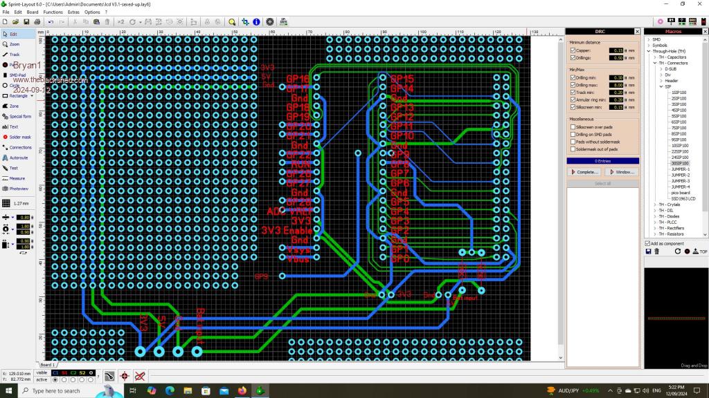 Mick the reason I made the sea of holes double sided is on the bottom layer there isn't much room height wise so larger parts can go ontop the board where there is more room. Also with it being double sided it will make it easier to solder tracks on the sea of holes. I do have to go down to town today as I scored a i7 SFF computer for my wife for $40 so later when I get back I'll have another play. It would be great to get this design finished so I can get it off to JLCPCB as time wise everything will turn up around the same time. Regards Bryan |
