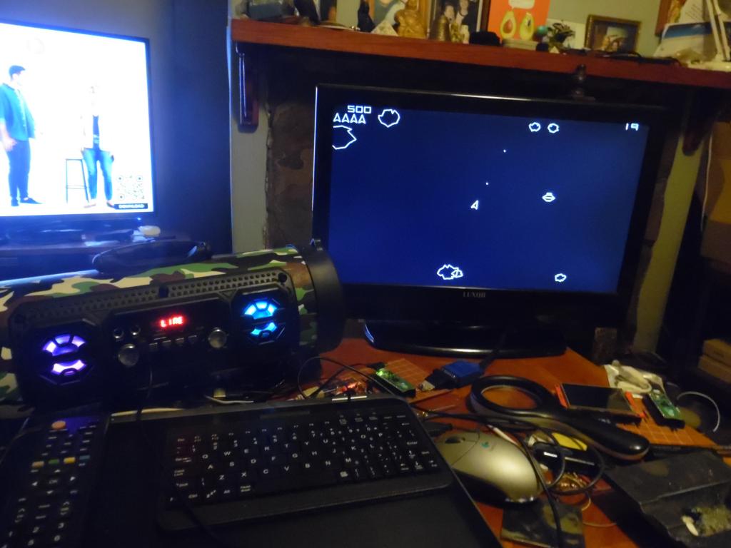 in anticipation of olimex arriving searched my tv's with hdmi and this was wide screen but analogue , no freeview digital but hdmi. in the mean time connected usb vga pico2. vga looks better than the vga monitor but then it's bigger. no 3.5 stereo input for vga sound but loads of other option so I used a stereo rechargeable £14 blaster with 3.5 aux in as well as guitar sockets, usb playback, and fm radio... and the sound in asteroids is proper.. not the bleeps from the vga monitor so I don't think sound through hdmi is important. |