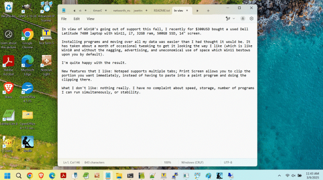 In view of Win10's going out of support this fall, I recently for $300USD bought a used Dell Latitude 7480 laptop with Win11, i7, 32GB ram, 500GB SSD, 14" screen.