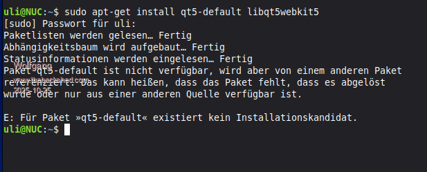 @Tassy-Jim The terminal-info says that packet qt5-default is not available, however from an other packet referenced, may be that packet was absent, or it was taking over or is from an other source provided. for packet qt5-default there is no installation candidate existing ![]() ![]() greets Wolfgang |