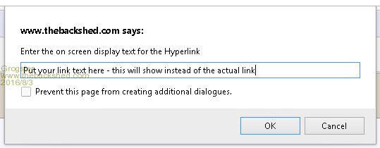 Press ENTER when you have typed what you want the link to say. Another box will pop-up - paste your actual link into that box, and press ENTER.