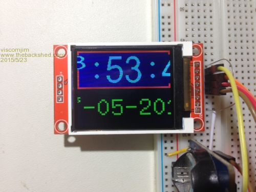 CONST DBLUE = RGB(0,0,128) COLOUR RGB(GREEN), RGB(BLACK) FONT 1, 3 BOX 0, 0, MM.HRES-1, MM.VRES/2, 3, RGB(RED), DBLUE RTC GETTIME DO TEXT MM.HRES/2, MM.VRES/4, TIME$, CM, 2, 1, RGB(CYAN), DBLUE TEXT MM.HRES/2, MM.VRES*3/4, DATE$, CM LOOP 'X = MM.HRES 'Y = MM.VRES 'PRINT X,Y My display draws the box correctly but the text is very large as shown... when I do the mm.hres and mm.vres it shows 160 x 128 EDIT... I guess I should play with the font command and report back. DUH! EDIT 2... Yep! RTFM Jim. Here is new code for smaller display... OPTION EXPLICIT
