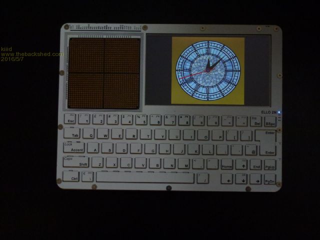 Pether's excellent Big Ben clock is the first program ever ran on my just assembled and now fully functional ELLO 2M laptop (still using the old screws as the new ones with smaller heads are on their way) http://rittle.org -------------- |