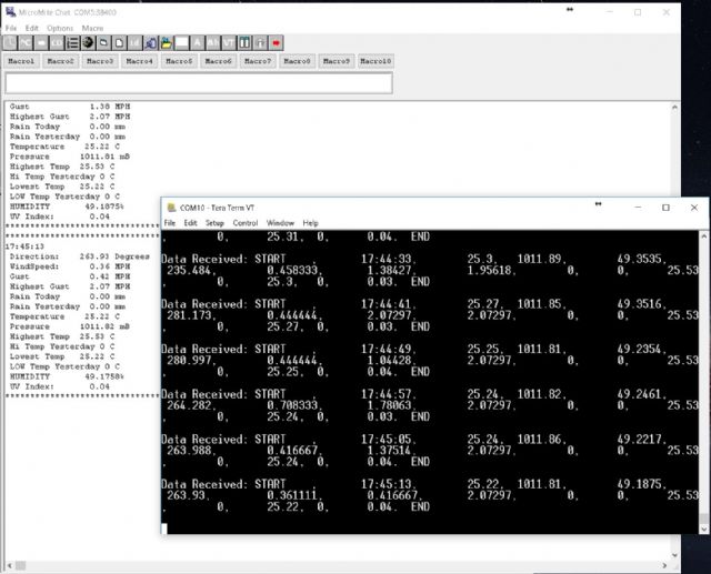 Back to square 1 After sorting my head out, sorting the connections out, sorting out the broken TTL cable I've got 2 working Micromites again. Now the tx unit is definitely 100% transmitting data on the HC-12 Wireless link The receive HC-12 is definitely 100% receiving the data transmitted by Micromite number 1 (tested by putting the receive hc-12 on the TTL cable and reading it on the PC) However I've got myself so confused now that I cannot display anything coming in on the receive micromite. Can Anyone tell me "simple code" to display EVERYTHING coming in on com1 please? As an aside - the data from the transmit unit is only transmitting ONCE every 8 seconds (I set it so it's transmitting the received weather data) |