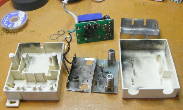 Yet another electronic device makes it's way up to silicon heaven: ![]() ![]() ![]() That used to be a TV distribution amplifier, and this was out in the field, not even in the main complex that was hit, so the lightning has come screaming down the underground cable-TV feeds too, and did that to this amp in a completely separate building from the main one. Wow. I expect I will be finding new faults and replacing parts up to Christmas and probably beyond at this rate. Smoke makes things work. When the smoke gets out, it stops! |