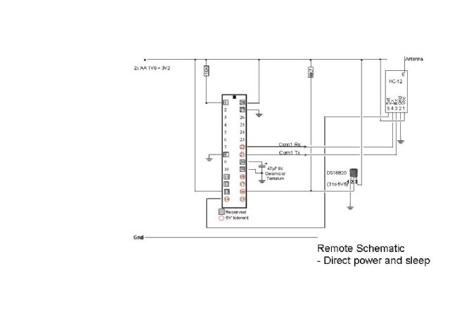 Hi again. An update: My 2x AA-powered remote (an MM170, a DS18B20 and an HC-12) is still working after 4 weeks but the battery voltage has dropped from 3.2V to 2.93V. It can't keep going much longer!
