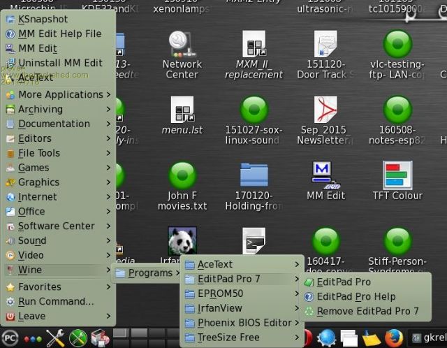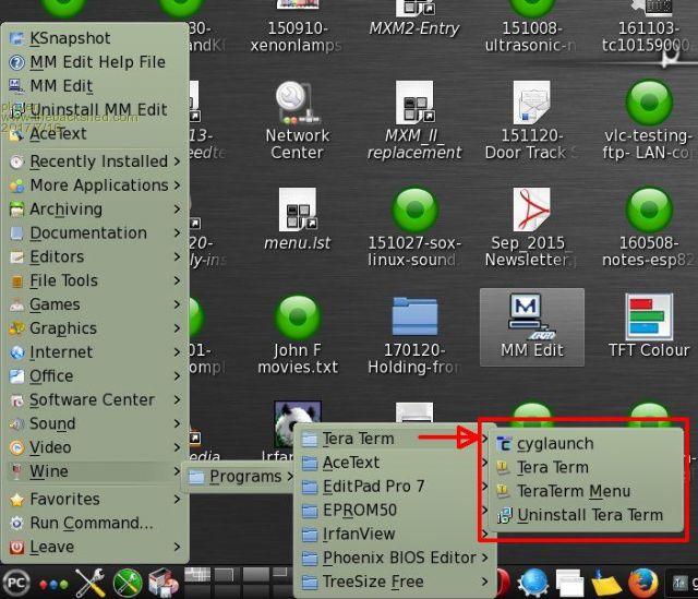 I will explain what I meant by "disappeared out of the K-menu entry". I deleted MMedit in the CCom folder, ie just deleted the folder CCom, that was my way of uninstalling. MMedit was not installed by "wine control" so this could not be used to uninstall. After deleting I the used "wine control" to install MMedit again, to my surprise this just created the same CCom folder. I was expecting to see an entry under K-menu (PC-menu) wine entries as shown in the picture: ![]() I know there are a few options in the CCom folder, for example the CF-gen option and uninstall. Some installs earlier did show MMedit in the PC-menu wine listings, with options but I don't remember exactly how many and I don't know at what stage MMedit dropped out from the PC-menu wine location. ZZzzz time here. |