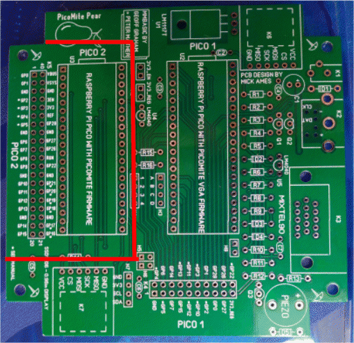 Thanks. While I'm gathering parts for the pear pair, I need an as small as possible picomite PCB breakout. Since I have 5 of these pear PCBs and don't expect to need more than one, is there any reason I can't just cut out the PICO2 along the lines shown in red below, and use the 20x2 connector, powering either through USB or VSYS? ![]() PicoMite, Armmite F4, SensorKits, MMBasic Hardware, Games, etc. on fruitoftheshed |