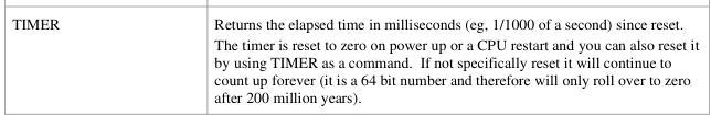 Can TIMER be used as a COMMAND? It can be used as a variable (timer = 0 etc) but I tried timer 0 and got Error: Syntax (using mmb4l) John |