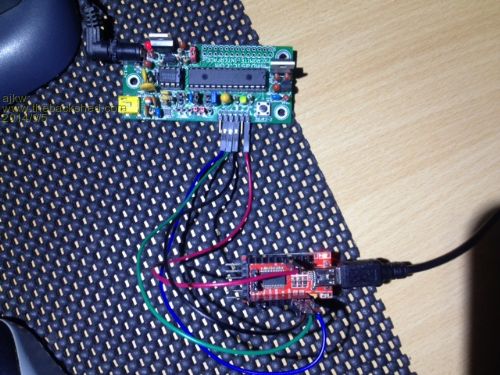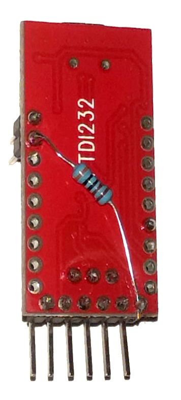 Peter - No worries! rob - I stuck a 1K across the 3K3, giving about 767 ohms and cut delays (then stuck a tiny one back in to make it work). Time to flash a umite dropped from 69 secs to 40. (Confirms the resistor inserts a delay as it was said to.) No apparent nastiness and I'm still with the original mare's nest of wires. May not need the 100R and cap after all. Thanks for the help, everyone. Looking OK. Next to make it work with 4 wires (no 1K/3K3) and/or a Windows host... John |