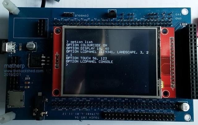 I tried to get all this sort of info on the silkscreen of the backpack. For the ILI9341 its on the silkscreen just alongside the ILI9341 header. You can just about see it in the picture on page 3 of this thread. OPTION LCDPANEL ILI9341, orientation, 3, 2, 1 Yes, for the ILI9341, but for a ILI9481 on the HAT header it is 112,56. Again all this is on the silkscreen so I don't have to keep referring to the schematic |