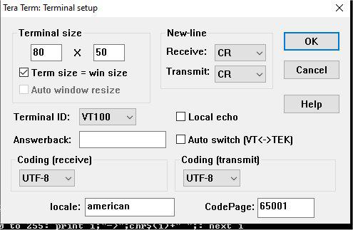 This is my Teraterm terminal setup: ![]() I found that when I tried to copy (Ctrl-c) the Teraterm screen with the line-drawing characters and paste it into the forum here, I got the characters you show. That's why I did a screen shot. PicoMite, Armmite F4, SensorKits, MMBasic Hardware, Games, etc. on fruitoftheshed |