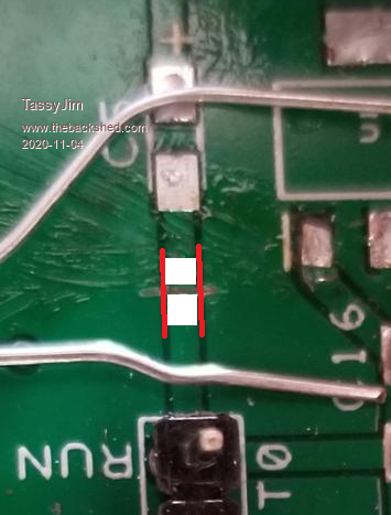 It is the vertical gaps either side of the original trace that worries me. When you did your horizontal cut, it looks like there are some copper dags that were left at the ends of the cut. A quick scrape down the vertical gaps will ensure that they don't bridge to the copper fill area. Your capacitor lead would be a good candidate for using as a solder aid if required but your cut is nice and narrow so it shouldn't be needed. At Peter suggests, try without the capacitor first. If it doe work than consider the capacitor as a second step. Jim VK7JH MMedit |