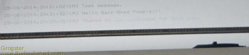 The third line on the printer says: "Thanks to CircuitGizmos for this idea" - the printer ribbon on this printer is getting a little dry..... EDIT: No matter what size I make this photo, the forums are re-sizing it, so you probably can't read the other two lines either, which say: "Test message." and "Hello Back-Shed people!!!" Smoke makes things work. When the smoke gets out, it stops! |