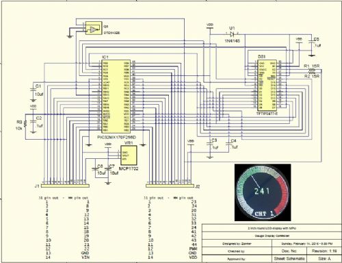 This is the purposed schematic for the PCB... Pin 10 of the MM will be used as an analog input for a yet to be selected light sensor device... Feedback welcome..!! 2016-02-15_035347_Round_Gauge_MPU.pdf |