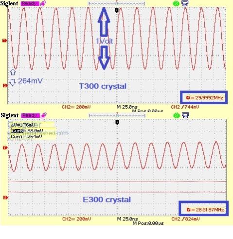 UPDATE: Phil over at the PICAXE forums has received two of my clone modules, and has tested the crystals - they are stunningly bad...... An extract from an email that he sent me: [Quote=Phil from PICAXE forums]28.5MHz and less than half the amplitude of the signal across the “T300” crystal![/Quote] Please visit the PICAXE thread for an image he has posted comparing the genuine with the clone crystals. I have asked him in an email if I can repost his image here, because you can't get the full-size image from the PICAXE forums, unless you are logged in, and many members here won't be members of the PICAXE forums. As soon as he says that is OK, I will re-post his image here. EDIT: Permission granted from Phil to re-post his scope image, so here you are: ![]() For a crystal that is supposed to be 30.000MHz, this is not good.... Smoke makes things work. When the smoke gets out, it stops! |