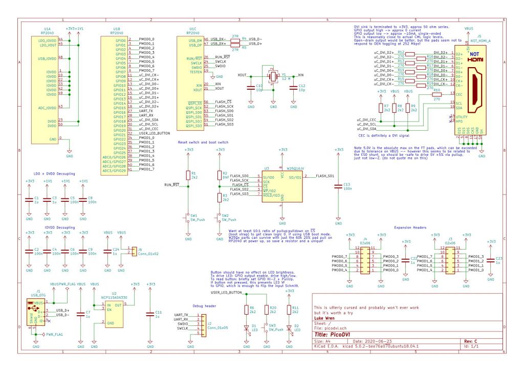 Someone's done bit-banged DVI on the Pi Pico. https://github.com/Wren6991/picodvi He says there's room in RAM for a QVGA framebuffer, and it can drive DVI with just resistors and an HDMI connector. But it looks like he's also made a board with some expansion video RAM. In the photo, the (expanded) PI Pico is driving two monitors via HDMI at the same time! |