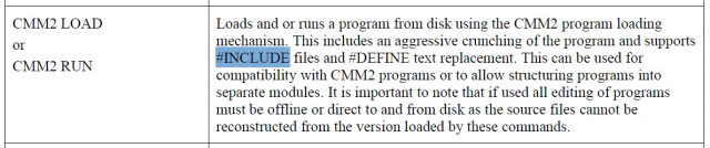 #include only works within a file being loaded by CMM2 LOAD or CMM2 RUN |