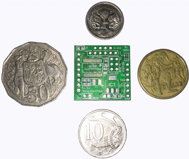 Hi John, I have mentioned the board is 28mm x 28mm (1.10") but I have to admit it doesn't register how small they are until you see them. I designed it to be the exact size of the 0.96" OLED modules but with the panelising it has added 0.5mm or so. It comes out as approx. 28mm square.. I sent one to Iliya (of Autotrax DEX fame) and he was shocked at its size because he has been using my pictures (above) in his demonstrations on the DEX forum and didnt realise its size. It is so small it looks outright silly connecting to the display with male/female headers, see the Video clip Sample.MP4, on the link above.. You may have to download it to view it.. With my NanoMite (15mm square) I took a picture with a 5c coin and I reckon not one person realised how absolutely small they were until they had them in front of them. Here it is with a few AUSTRALIAN coins for comparison. Kind Regards, Mick Mick's uMite Stuff can be found >>> HERE (Kindly hosted by Dontronics) <<< |