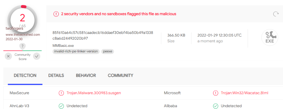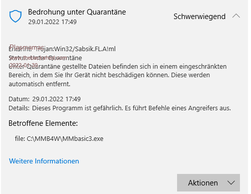 I had a similar problem. Windows refused to download the MMBasic file. I run a "Microsoft Defender Offline" scan. After that there were no more complaints when downloading. Would ofcourse be nice/good to know the reason for the virus alert. |