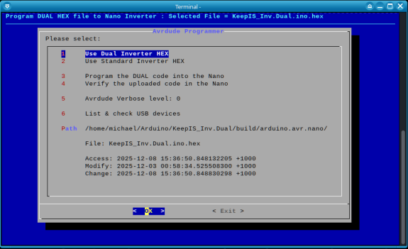 Apparently, reading forum postings, hardware updates are really increasing lately, I've had a lot of updates to the Kernel and Distro tool set lately, some to give enhanced support for the latest (2025) Intel Core Ultra chip sets, one of which I'm using in the Mini PC. I was also lucky in that in my early research of Linux, prior to dumping windows, I found emerging warnings about Memory / SSD / M2 prices could be about to go ballistic. I was going wait for a while before upgrading, but instead I grabbed the new mini PC I was looking at, with a couple of 2TB M2.x and 32GB of DDR5, and grabbed a 2TB SSD before the shi# hit the fan. I don't do any gaming, so that's more than I need, within 2 weeks of placing the order, the prices had nearly doubled, SSD's and the M2 stock levels reduced even more, over the past 2 months I've watched prices increase again and again. I've spent a lot of time getting a better understanding of the Linux Kernel and the history of the various Distributions/forks, along with the different desktop GUI environments. I have written some nice GUI Bash scripts that replace some old Windows GUI apps for the Programming hardware I have. I actually found the hardware setup easier under Linux when compared to Windows, for the same hardware. That was once I got comfortable with the terminal though, and the real Linux File construct, everything makes sense now. NANO Inverter: Full download - Only Hex Ver 8.2Ks |