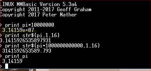 New minor update 5.3a4. This has the floating point formatting re-written and will now output as many significant digits as required. ![]() 2017-04-17_142750_mmbasic.zip |