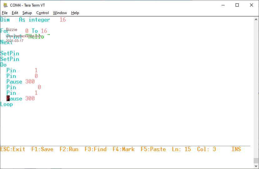 Hi All, I took delivery of an F4 (STM32_F4VE) today Ver: V33 SN:2021W, loaded it with the bin above put a Transcend micro 2GB card in and files worked straight off. I do not have any other cards to try at this stage. A problem with the editor in colour mode though. See below ![]() I am using Tera Term so assume all should be OK. Regards Rob White |