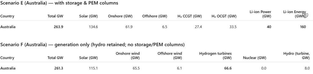 I ran across this interesting study on potentials for the European electricity grid in the year 2050 using intermittent renewable energy sources (IRES) to provide "Firm wind and solar photovoltaic power with proactive curtailment": https://www.sciencedirect.com/science/article/pii/S0196890425009239. The sources were solar PV, offshore wind, onshore wind, turbine generation from hydrogen, and existing nuclear and hydro. No imports from outside Europe were considered. Batteries were used but not considered a "source" of electricity. The paper came up with 6 scenarios, A-F. E, which included no nuclear or hydro but did include LiFePO4 batteries, and F, which did included nuclear and hydro but not batteries, came in for the most analysis. I read the paper, but then asked ChatGPT-5 to analyze and summarize it, and to put scenarios F and E into table form for the top 10 EU economies plus the UK. This is the first time I've asked an AI to do this thing which it is supposed to be good at: analyzing a paper or study. This is what it came up with for the tables: ![]() I was surprised that the authors concluded that Scenario E was more cost-effective than F which included already-built nuclear and hydro. I asked GPT-5 to discuss that more, and it said that the conclusion was that because solar and wind were so cheap, and nuclear and hydro (of which little includes storage) were not well suited to dispatchable (on-call) generation, that Scenario E was more cost effective even though it required the installation of much more solar and wind. I asked if it could do a similar analysis for Australia. It said it could with "straw man" assumptions: ![]() It added: "Notes: These AU values reflect the straw-man assumptions we used (600 TWh demand; CFs: PV 24%, onshore 38%, offshore 45%; curtailment ≈2% in E and ≈0.8% in F; batteries ~4-hour @ 200 cycles/yr; H₂ turbine average CF ~12%; PEM at ~40% utilisation)." I don't entirely know what to make of it all, but it was an interesting exercise, let me try a form of AI use that I hadn't explored before, and informed me about some issues I wasn't aware of. Bottom line, per this study, Europe can have "firm" electricity by 2050 exclusively from solar PV, offshore wind, onshore wind, LiFePO4 batteries, and a limited amount of dispatchable hydrogen turbine generation (with the hydrogen produced from electricity generated in times of surplus)--with curtailment of only 1.9% of the solar and wind production. PicoMite, Armmite F4, SensorKits, MMBasic Hardware, Games, etc. on fruitoftheshed |