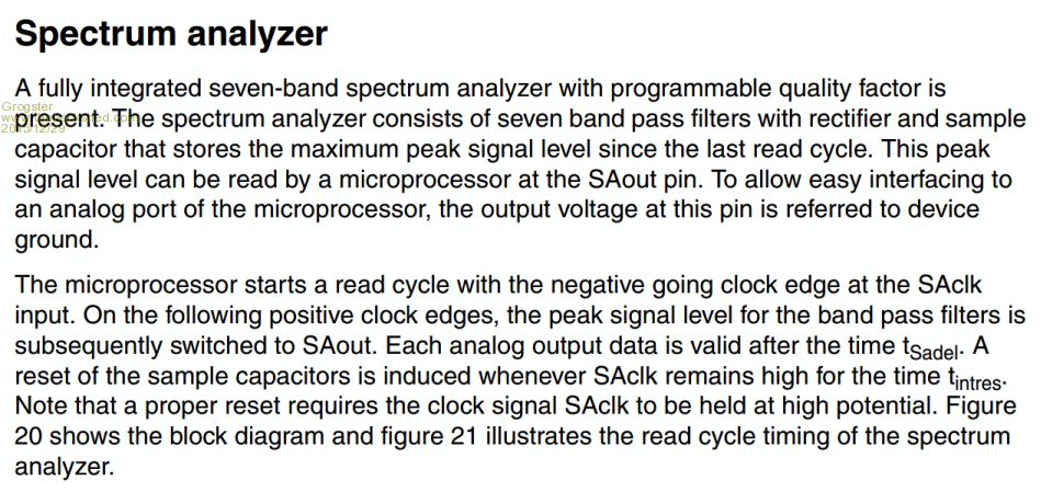 Phil - the analyser is supplied by the 7419 audio processor chip, and jman's code just talks to the 7419 to get this data, then plot the bars on the screen. So, you need the 7419 chip and audio going through it before you could use the analyser output. From the 7419 manual: