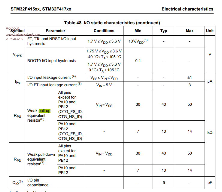 Hi Phil99, The weak pullup inside the STM32F407 is 40kohm. The suggested external resistive pullup is 47k ohm as I recall. Therefore the internal pullup is even stronger than the suggested external resistor. Regards, Volhout PicomiteVGA PETSCII ROBOTS |