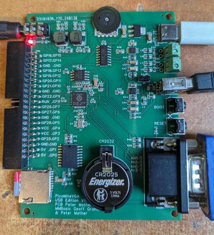 Thanks Peter. In the hopes of learning something can I ask why you chose to use different pins for the VGA than on the PicoMite VGA ? Best wishes, Tom MMBasic for Linux, Game*Mite, CMM2 Welcome Tape, Creaky old text adventures |