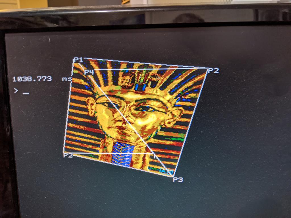Just a quick update on this. I've got an efficient algorithm for mapping triangles working well. It turned out to be trickier than I thought due to all of the combinations of source image points and destination points, flipped images etc. But it handles them all well now. Basically throw any 3 destination points and any 3 source points (and the source graphics page number) and it will map it correctly. The best method I could come up with was to split the triangle in two and draw it as a flat bottomed triangle on top of a flat topped triangle. This allows me to walk down the outside edges of the top triangle, and then walk down the outside edges of the bottom triangle. In the image below I have drawn in this extra 4th point and the split line between the two triangles. So the top triangle is P1-P4-P2 and the bottom one is P2-P4-P3. ![]() I had hoped to be able to use this to create rectangles by splitting the rectangles in to two triangles (see below), however it distorts the mapped image. (in the picture below the right hand triangle takes up more physical on screen pixels than the left hand one - yet they are mapping the same number of pixels from the source image). But not to worry, now that I have the triangle code working, it's a simple task to alter it to work with a four sided shape. I will get that working in the next few days. ![]() After I have the rectangle working I will post the code for both functions here. Maybe you guys could improve upon it? Speed it up? Find bugs etc. The algorithm itself is pretty simple. Edited 2020-11-18 10:55 by PeteCotton |
