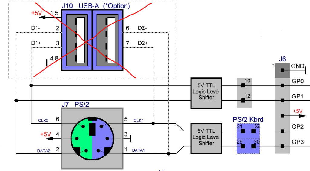 I do not use USB connectors, they are shown as optional on the diagram. I use a Y-shaped cable to connect two devices to one PS/2 connector. As I have already found out, the PS/2 mouse does not work when configured for ports GP0, GP1, but it works when configured for ports GP2, GP3. At the same time, by swapping them, the PS/2 Keyboard works on any of these pairs of ports. Edited 2024-12-04 18:38 by javavi |