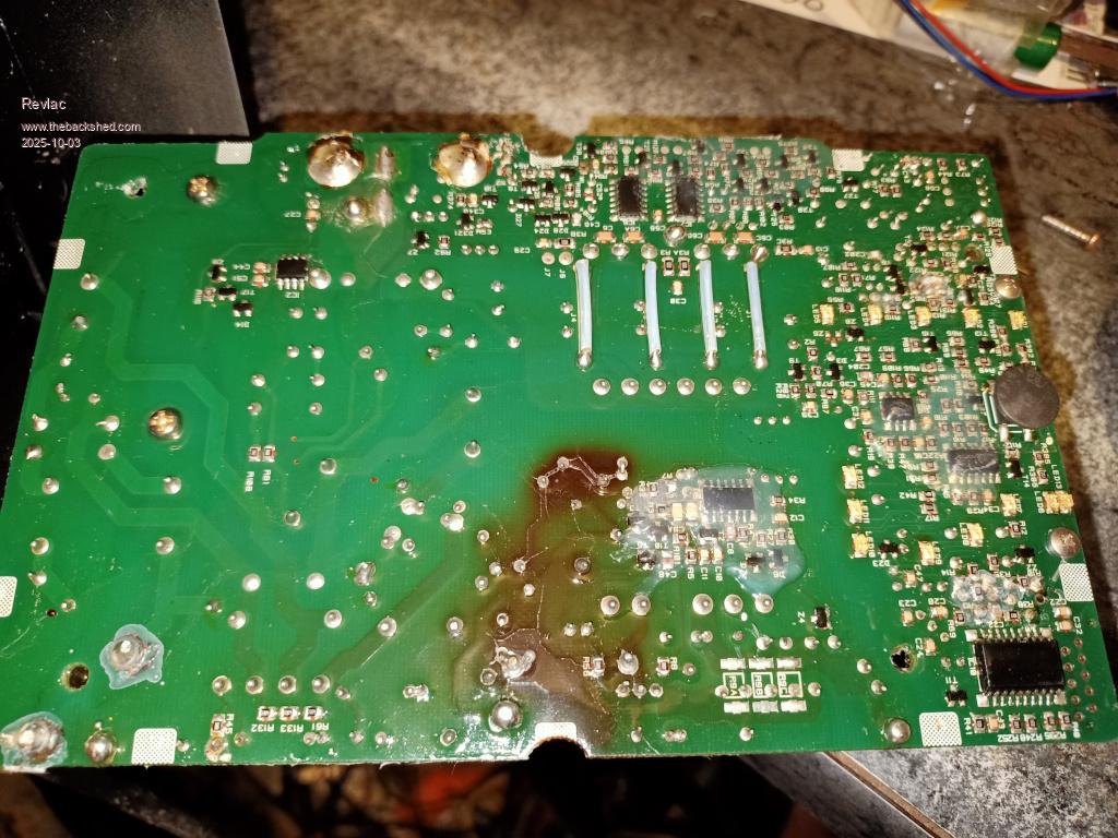 A friend dropped in and asked if I could have a look at his neighbours battery charger, it was working and it just stopped....yes, $ for every time I heard that. Ok this one is CTEK MXS 15, just look at the photo.  Didn't bother plugging it in, just checked power plug with a meter and it was open circuit, so possible internal fuse blown. Looks nice inside and yes internal fuse is blown, dam hard to get to and still don't know its value yet, the question is why did it blow the fuse?  Looking closer, there is some brown on the PCB and those resistors have been a bit warm and the conformal coating has blistered.  On the other side of the PCB, yes something has taken s dump.  I have highlighted with green the placement of 3 resistors seen on the top, the other track (red arrow) is not really a track from what I can tell, its a burn across the PCB shorting between the 2 resistors, haven't seen a schematic to totally confirm this but its a deep groove and likely what eventually blew the fuse, the diode and mosfet check ok there may be other damaged components.