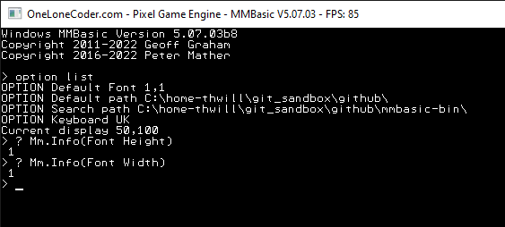 There are hundreds (thousands ?) of places in MMbasic where additional characters in commands/functions are not trapped. To do so would increase code size and slow performance. The code with the space is returning the current font. I'm not going to change this Try ON ERROR IGNORE TOM On all versions ![]() Edited 2022-04-06 21:58 by matherp |