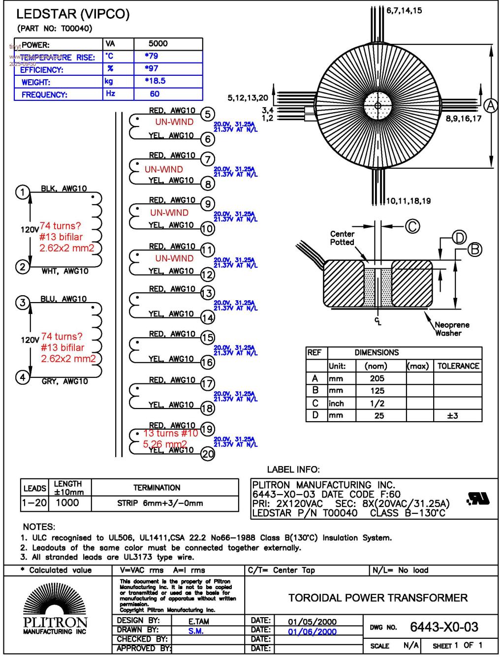 Calculated weight says 18.5 kg (40.78 lbs). Seem that my mod added only 1.3 lbs. AFAIK, the only inverter of similar power rating that can start a 5 ton A/C (without soft start) is the Schneider XW PRO which is rated for 6.8kW and has an 80 lb transformer. It's remarkable that your inverter can start a 5 ton A/C with a transformer that's half the weight. Using my notes and the picture above, and using number of turns instead of voltage, turns ratio is ((74 + 13) x 2) / 19 = 9.15 That turns ratio is certainly closer to typical. So, is the actual voltage ratio similar (26VAC to ~238VAC)? If so, it seems the original transformer datasheet voltage ratio was a bit off? Secondary cross section for the 74 turns (120V) is (2.624 x 2) = 6.8757 mm2 for the 13 turns (20v) is (1.6277 x 2) = 5.176 mm2 Primary cross section for the 19 turns (26v) is 1.6277 x 20 = 32.55 mm2 Hmm ... the build thread and the diagram above indicate 14 AWG for each strand for the primary winding which has a 2.08 mm2 cross section. The 1.6277 number looks more like the diameter of 14 AWG. For the secondary winding (the 120V portion), the build thread and diagram indicate 2x13AWG + 1x14AWG. The "2.624x2" above would mean only 2x13AWG? Can you verify? In any case, if you ever run the 5 ton A/C again with the inverter, it would be great to know how low the voltage gets. |