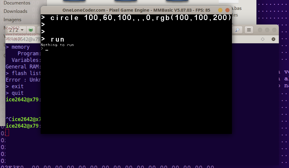 I do not use windows a very long time, but I try it on linux ubuntu 22.04 and wine 5 just for test. The MMBasic window open, but when I press F1 for editor, it list my Documents directory. basic commands, like print, do , loop, etc... work, mode 2 change the window, but no graphics. ![]() Best Regards, |