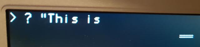 OPTIONS? The only option I've set is keyboard repeat. > option list CURRENT VGA mode 800x600 RGB332 CURRENT DISPLAY 50,100 OPTION USBKEYBOARD US OPTION KEYBOARD REPEAT 400,30 Everything else is whatever happens from flashing firmware. Same effect if I enter "option reset" Anything mode command related fixes the problem. Some other commands do too. Generating a syntax error fixes it also. The underscore cursor looks spread apart. The pixels are spaced one pixel apart. The character cell size appears double, although typed text is normal. Also, the CMM2 freezes once I'm 28 or 29 lines down the screen. The cursor disappears off the bottom at line 25 although the prompt character ">" is only half way down. The individual cursor pixels are much more distinct than these photos show. The phote has blurred them together a bit.    Visit Vegipete's *Mite Library for cool programs. | ||||