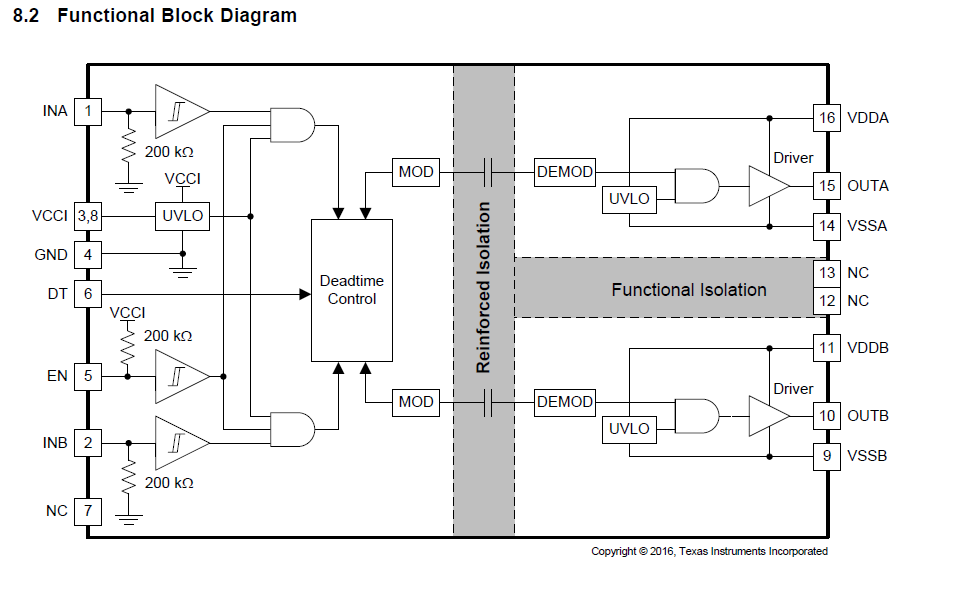 That Unitrode UCC21521 is certainly an interesting and very high performance device, but I do have some slight reservations for use in our high powered inverters. It would need to be mounted on the power board up close to the mosfets it is driving, with two isolated gate driver dc power supplies, and with the inherent built in dead time it certainly offers a number of advantages. All of that would be excellent. The non isolated input side of the chip would then require dc power and digital drive signals back to the main control board, presumably through a ribbon cable. And that I think may be a potential weakness. I still personally prefer a pair of inverse connected opto isolated gate drivers driven from a fairly low impedance balanced twisted pair for highest possible noise immunity in a high powered inverter. The UCC21521 would be much more at home where the microcontroller, UCC21521 and mosfets were all mounted on the SAME circuit board, close together, in something like a solar controller. Cheers, Tony. |