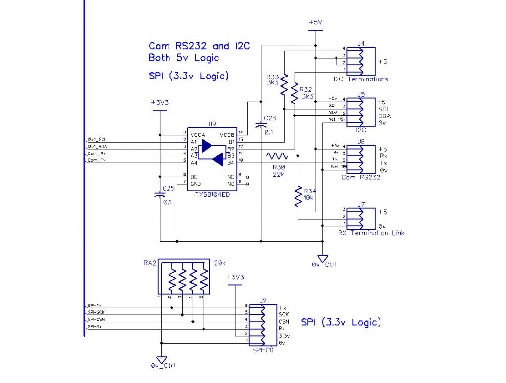 Have used a logic level converter on the RS232 and I2C connections, as this suits some of the modules I have here to play with, the SPI IO remains at 3.3v, optional none required for the charger.