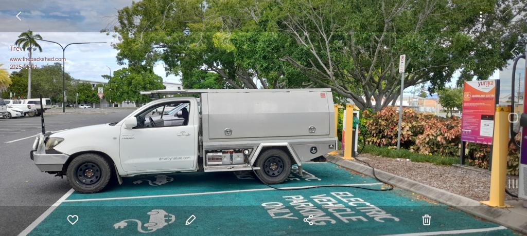 Another EV drive, but with a different vehicle. Last year, 2024 Dale (my son) and I converted his 2005 Hilux to electric drive. This is the first long distance drive for this Hilux Left home at 5.20am ![]() Drove to Carmilla 140km Arrived 7.23am Using 45% (used 271Ah) Drove mostly at 80km/hr ![]() ![]() Charging at Carmilla ![]() Charge rate 119A ![]() Trev @ drivebynature.com |
