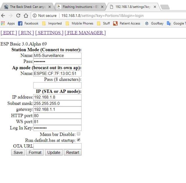 If anyone who is planning to help Lew with this, has any problems with the ESP8266 and ESPbasic I would be very happy to help. I am very familiar with ESPbasic and pointed Lew in this direction initially but I am sure his code is very home grown by now