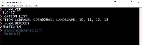 @ Matherp, Peter, even using version 5.0435 my 2.9in display insists on flashing black every update. Quite puzzling when you've shown us it doesn't need to! Using option lcdpanel GDEH029A1, L, 15, 21, 14, 22, 1 and your clock program. Do these displays vary between batches or something? @ Lew247. The more recent versions of Armmite L4 let you use the option as above. In the battery miser page is version 5.04.04 or therabouts... |