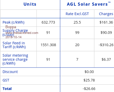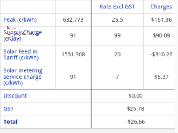 A lot of our savings was the solar HWS, which is actually that old now it is likely to need the tank replacing soon- all of the last year,it had the booster turned on for maybe 4-7 days total So that's one reason our elec usage is that low, free from the sun hot water... Luckily we rarely get snow in Qld (mostly) and never where I am,so heating really isn't an issue here, it's more cooling from BOM One advantage is that with our plan, and with our far more production than usage, our bills usually hover between $10 a quarter, and negative bills (where we actually get money back from them- deposited in our bank account lol- we have it set up for direct debit, and when they owe us money they just put it in the account they take it out of when we owe them- no 'credits' or other garbage) ![]() That's the elec bill before last |